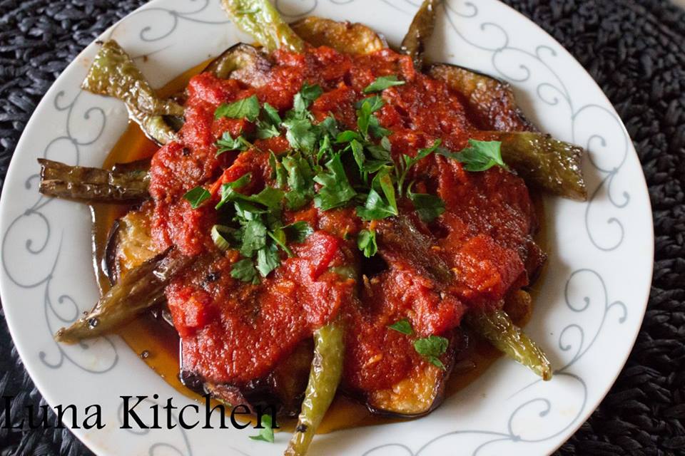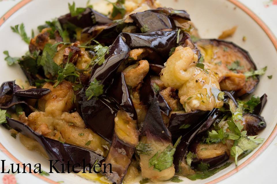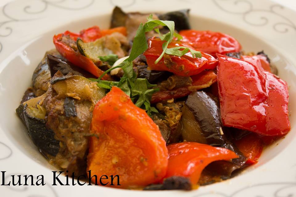 Meditearrane salade: paprika, aubergine, patatjes