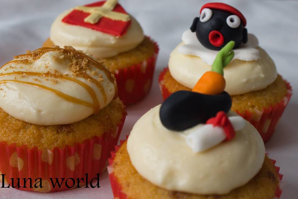 Cupcakes basis: Red velvet, speculoos smaak, vanille, chocolade, bananen, wortel en noten